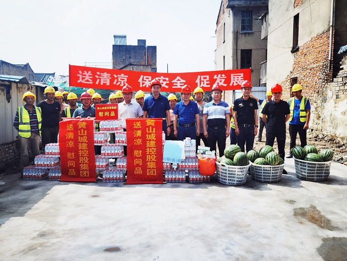 烈日炎炎,氣溫居高不下。為保障項(xiàng)目職工安全健康權(quán)益,確保項(xiàng)目安全生產(chǎn)平穩(wěn)推進(jìn),8月10日上午,黃山城投城建控股有限公司總經(jīng)理汪國(guó)文等一行赴寧國(guó)市河瀝文化街區(qū)EPC項(xiàng)目工地開展走訪調(diào)研暨“夏送清涼”慰問活動(dòng)。黃山建工集團(tuán)股份有限公司董事長(zhǎng)項(xiàng)端陽、總經(jīng)理葉金發(fā)、副總經(jīng)理吳學(xué)武陪同調(diào)研慰問。