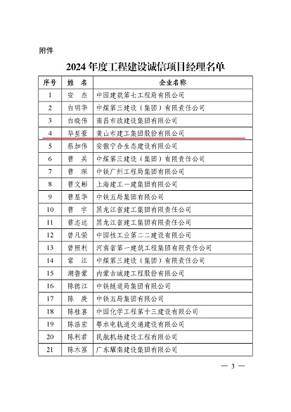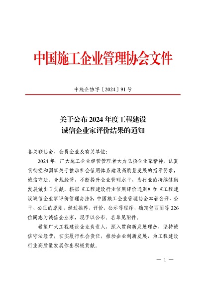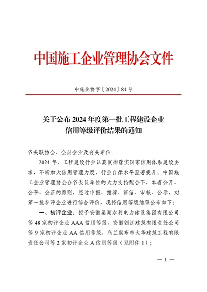 近日,中國施工企業(yè)管理協(xié)會(huì)公布了2024年度第一批工程建設(shè)企業(yè)信用等級(jí)評(píng)價(jià)結(jié)果的通知、工程建設(shè)誠信企業(yè)家評(píng)價(jià)結(jié)果、工程建設(shè)誠信項(xiàng)目經(jīng)理名單。黃山建工集團(tuán)順利通過AAA級(jí)信用企業(yè)的年審,繼續(xù)保持AAA信用等級(jí)的殊榮。黃山建工集團(tuán)總經(jīng)理葉金發(fā)獲評(píng)誠信企業(yè)家,項(xiàng)目經(jīng)理畢星豪獲評(píng)誠信項(xiàng)目經(jīng)理。此次榮譽(yù)是對(duì)黃山建工集團(tuán)在工程建設(shè)領(lǐng)域的綜合實(shí)力和誠信經(jīng)營的高度認(rèn)可。
